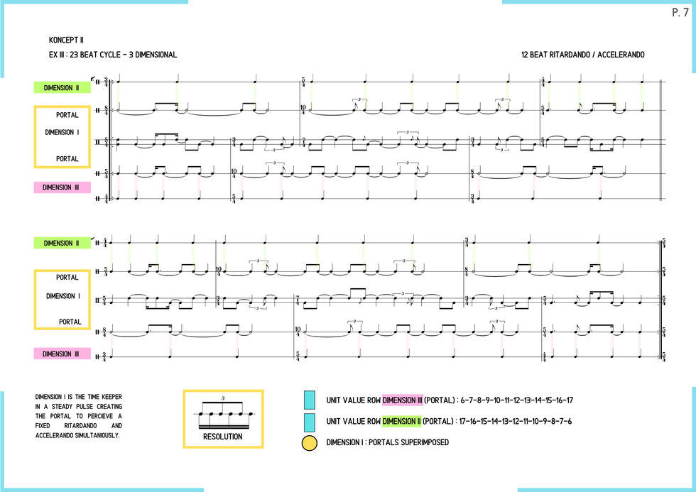 Left: approximate polyrhythms, as displayed in the structure repertoire KONCEPT III and the “walking beats.”